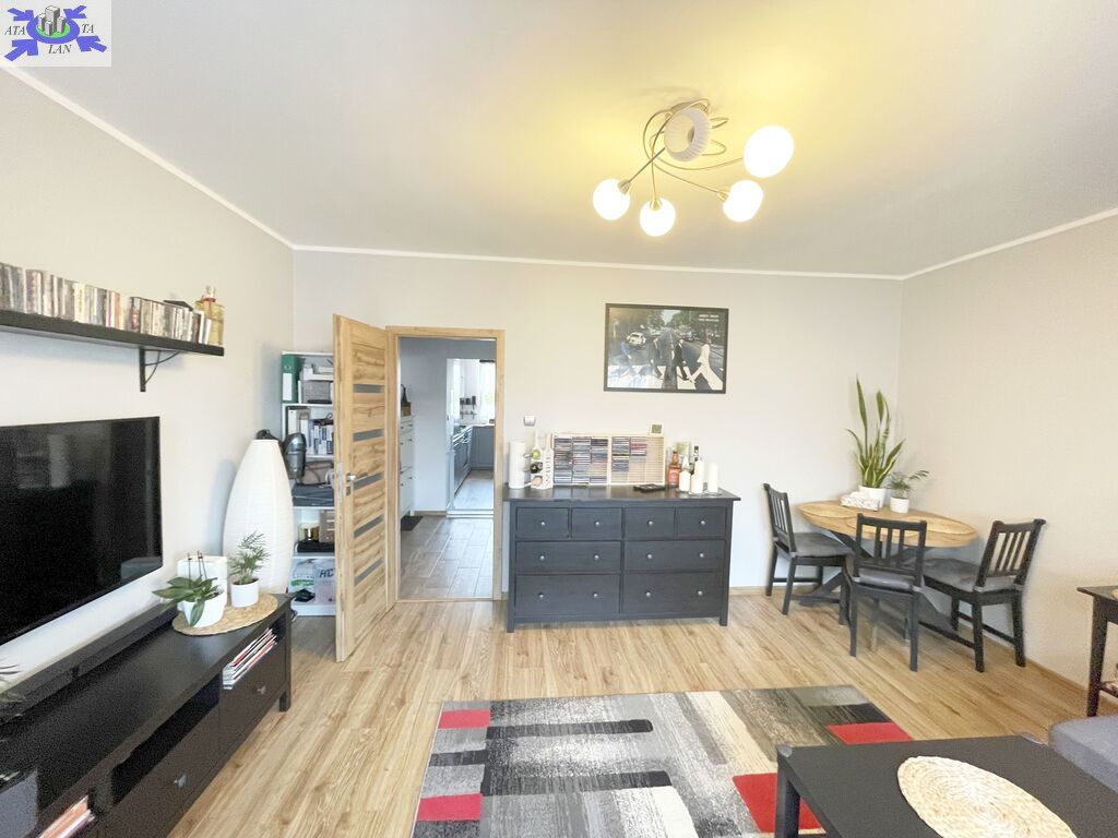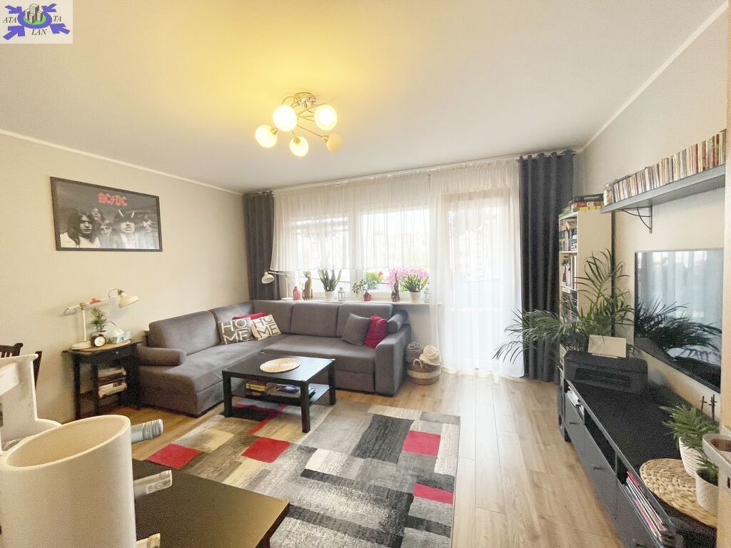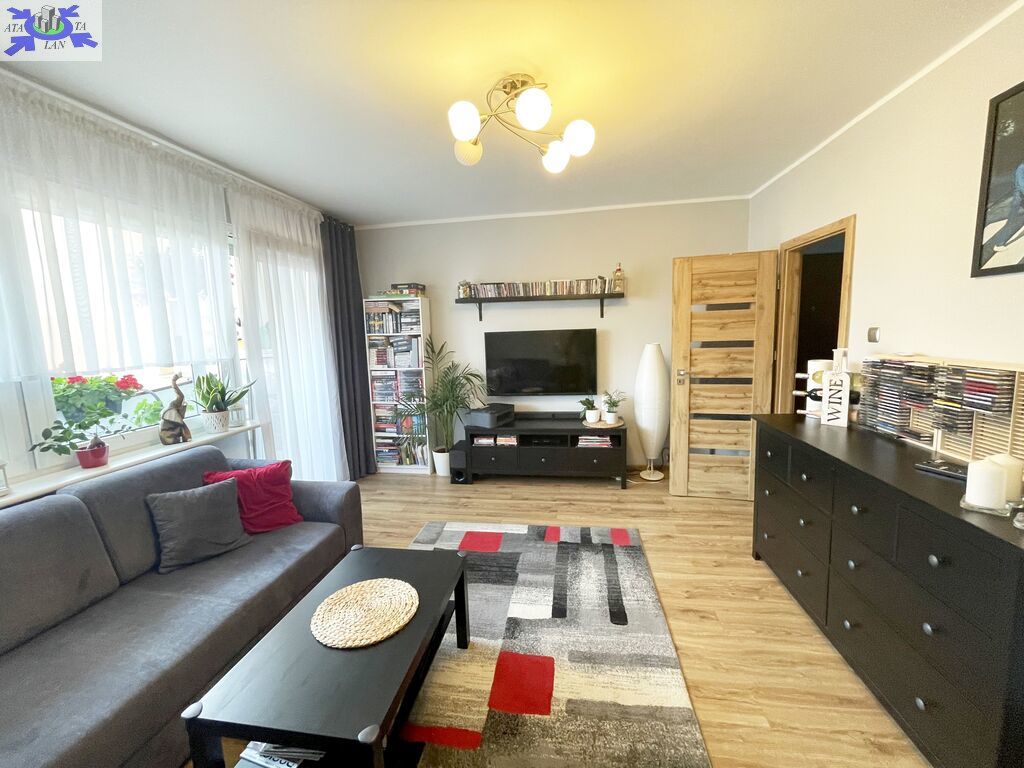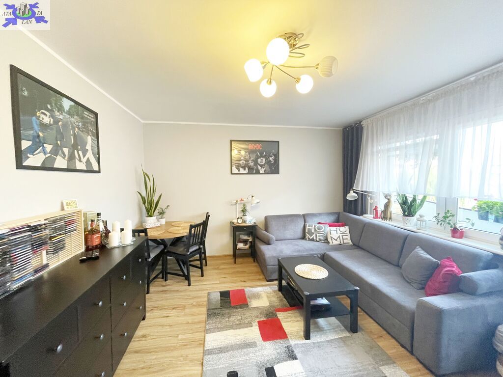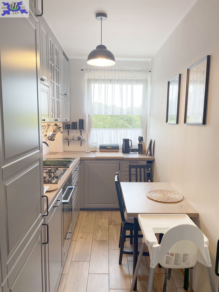 Na powierzchnię 47,54 m2 składa się salon z wyjściem na przestronny balkon, sypialnia , kuchnia w kształcie prostokąta , łazienka, WC oraz przedpokój w kwadracie. Ściany w mieszkaniu wygładzone i pomalowane, na podłogach w pokojach położone panele, w przedpokoju i kuchni na podłodze gres. Okna PCV , w pokoju balkonowym zamontowana zewnętrzna roleta. W kuchni zabudowa mebli kuchennych z AGD ( lodówka, zmywarka, piekarnik elektryczny, płyta gazowa).