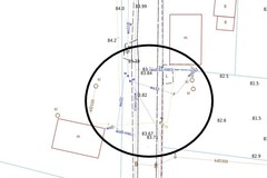 * Nachylenie płaska w okolicy domu i wzdłuż drogi (front działki), wznosząca się od połowy w kierunku dalszego krańca (tyłu).