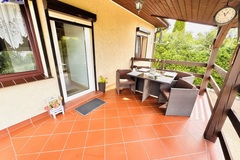 Nieruchomość zawiera dwa tarasy dolny (ok. 35 m2) oraz górny (zadaszony ok. 14 m2).