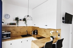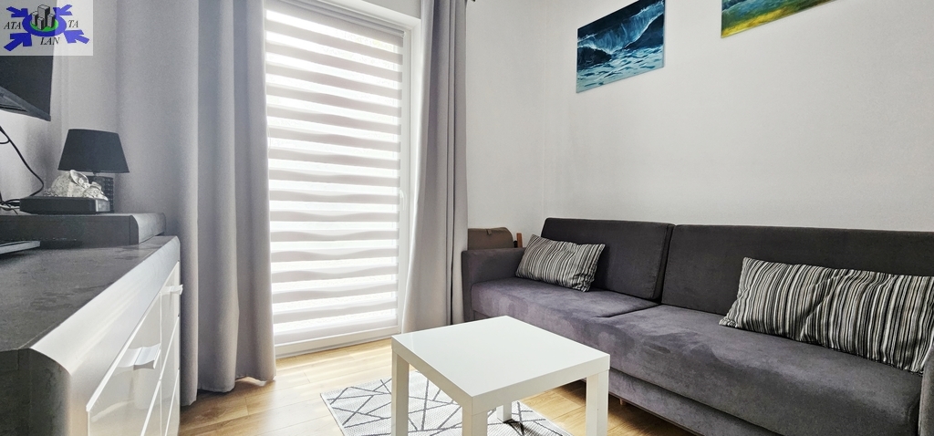 Apartament wykończony materiałami wysokiej jakości. W cenie może pozostać wyposażenie widoczne na zdjęciach, apartament przystosowany dla 4 osób, 2 rozkładane sofy z powierzchnią spania Na powierzchnię 33,4m2 składa się