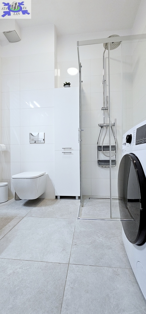 Z salonu wyjście na taras 15,52m2 i kamienny ogródek. W mieszkaniu ogrzewanie podłogowe zasilane z lokalnej kotłowni oraz klimatyzacja. Dostępne internet oraz TV przez światłowód.