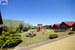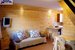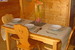 Przed wejściem do każdego domku jest ogródek z meblami ogrodowymi (stół i 2 ławki) jest on ogrodzony pergolami. Wnętrze domku wykończone jest drewnem.