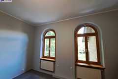 Dach wielopołaciowy stromy, częściowo płaski. Stolarka okienna drewniana i PCV.