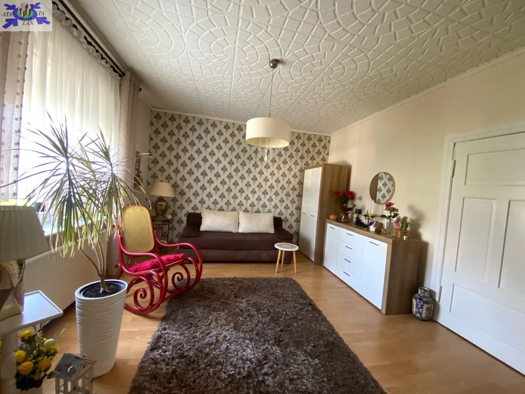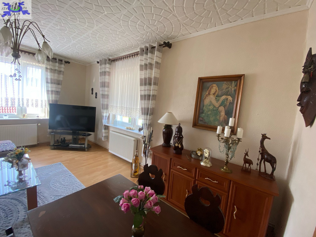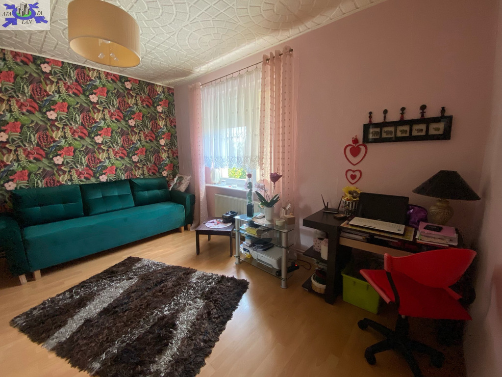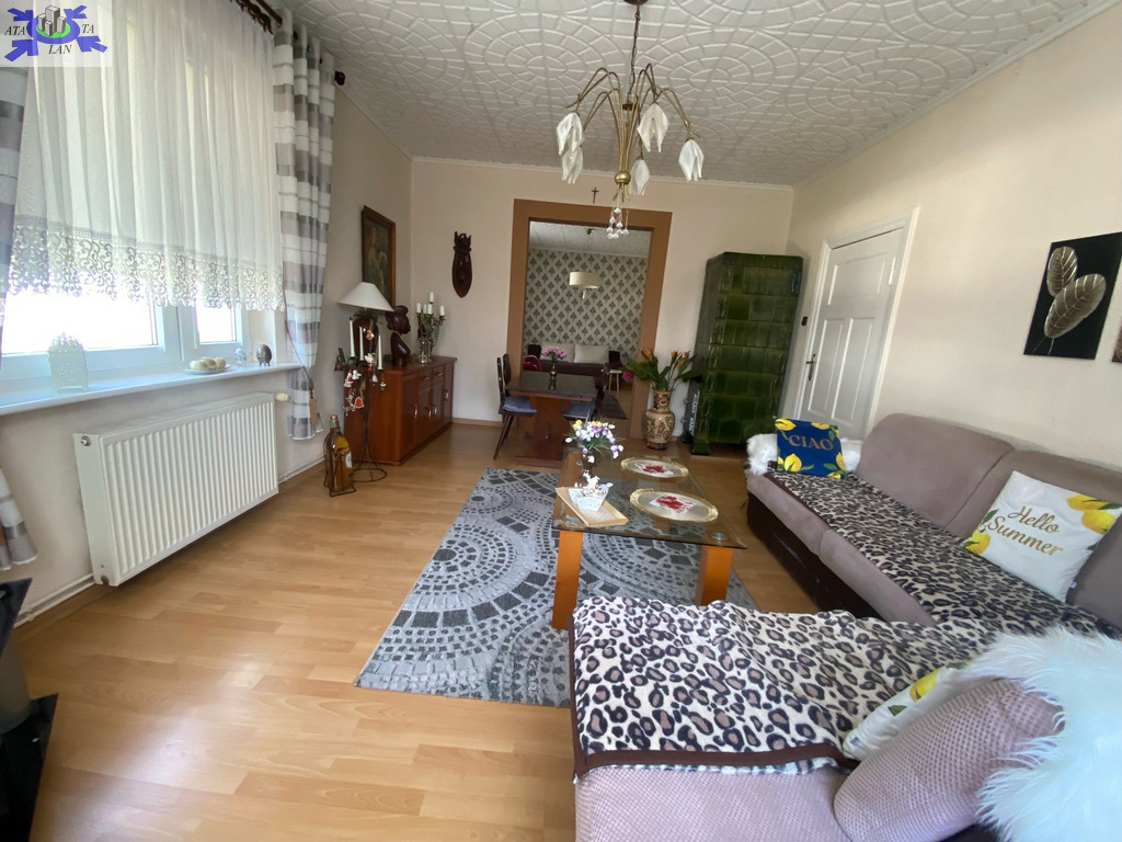 Piętro domu ze wspólnym wejściem. Powierzchnia mieszkania 76,91 m2 Udział w gruncie związany z własnością lokalu 334 m2Garaż wolnostojący Zagospodarowany ogród z drzewami owocowymi, idealny na wypoczynek i rekreację Rozkład pomieszczeń trzy pokoje, oddzielna kuchnia, łazienka z WC, loggia Pomieszczenia dodatkowe piwnica oraz strych na zasadzie współudziału