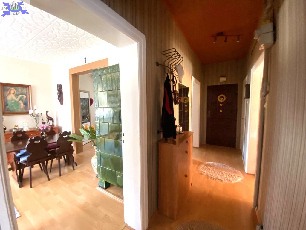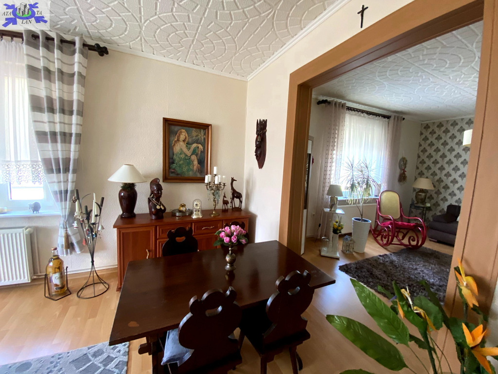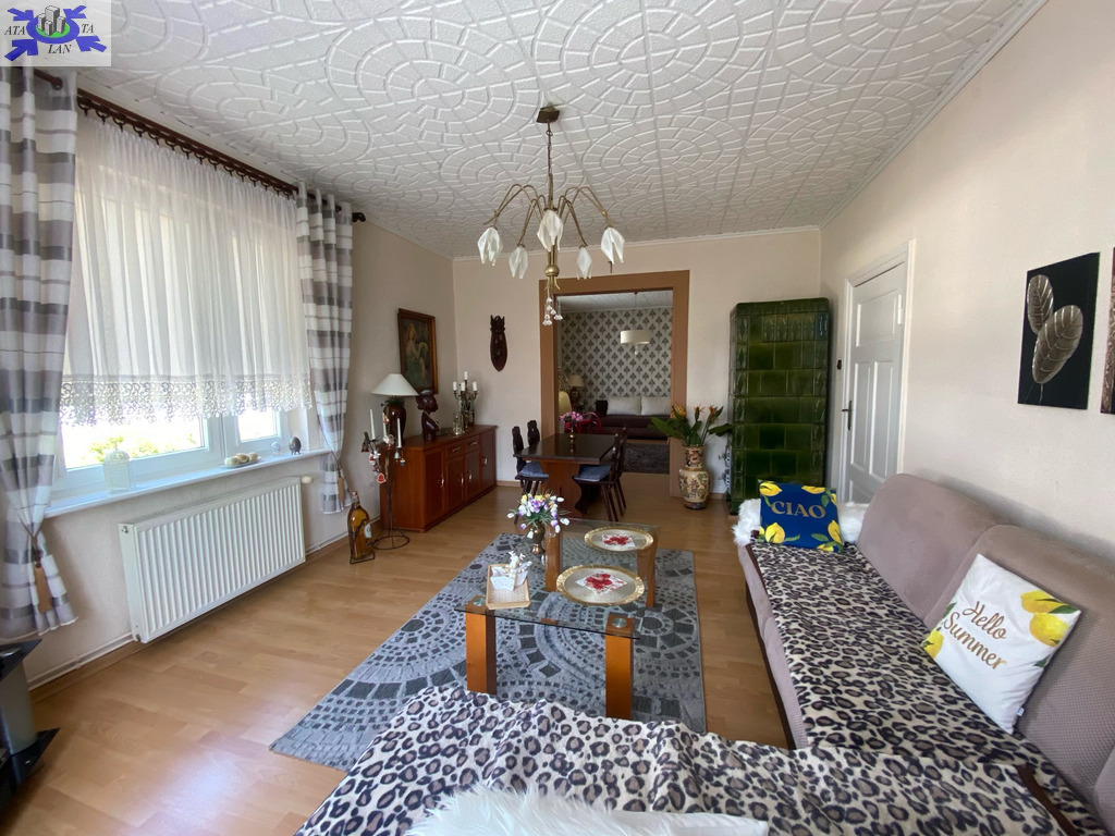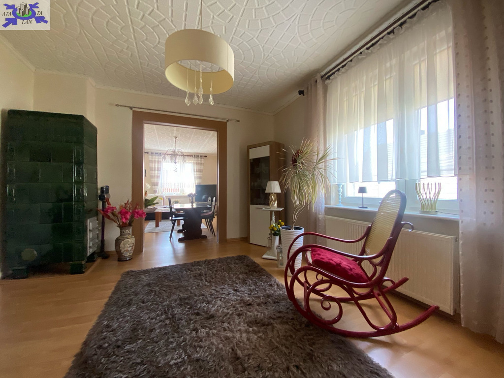 Piętro domu ze wspólnym wejściem. Powierzchnia mieszkania 76,91 m2 Udział w gruncie związany z własnością lokalu 334 m2Garaż wolnostojący Zagospodarowany ogród z drzewami owocowymi, idealny na wypoczynek i rekreację Rozkład pomieszczeń trzy pokoje, oddzielna kuchnia, łazienka z WC, loggia Pomieszczenia dodatkowe piwnica oraz strych na zasadzie współudziału