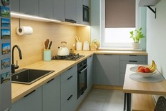 Osobna, jasna kuchnia - w pełni wyposażona w nowoczesny sprzęt AGD lodówkę, piekarnik, płytę indukcyjną, zmywarkę i okap. Wysokiej jakości meble w zabudowie zapewniają dużą ilość miejsca do przechowywania.