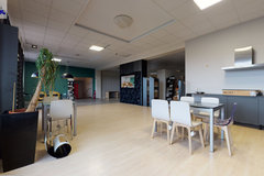 Wewnętrzne ściany gładkie, na podłogach w salach sprzedaży panele, w pomieszczeniach biurowych i socjalnych terakota.
