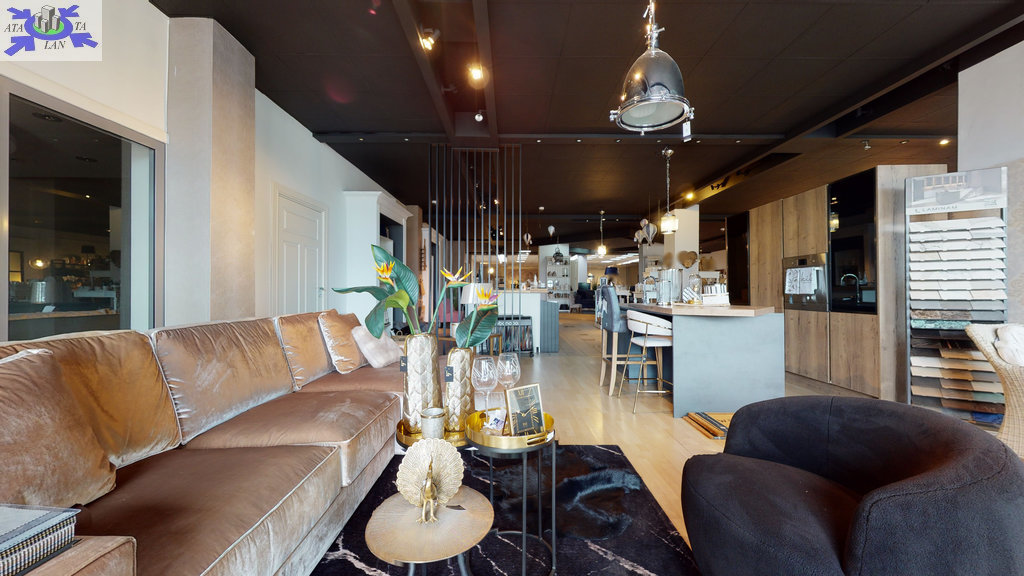 Na parterze, poza salą sprzedaży znajdują się węzeł sanitarny i pokój biurowy. Na pierwszym piętrze sala sprzedaży, oraz węzeł sanitarny, kotłownia i pokój biurowy. Drugie piętro to kolejna sala sprzedaży, zaplecze dla personelu i toaleta.