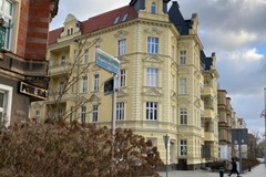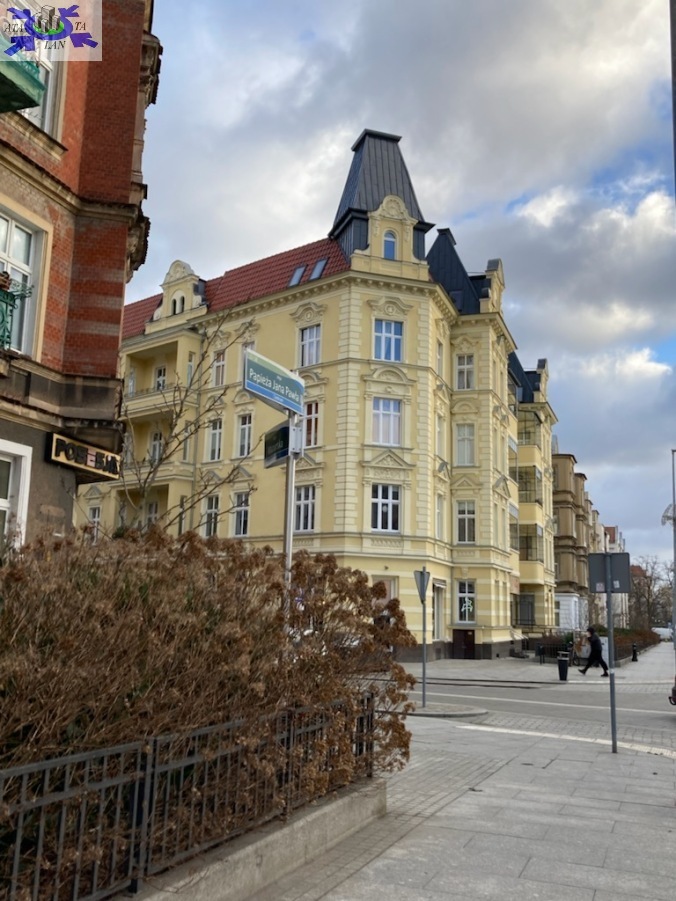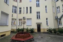 Odrestaurowana kamienica przy al. Jana Pawła II z zadbanym patio.