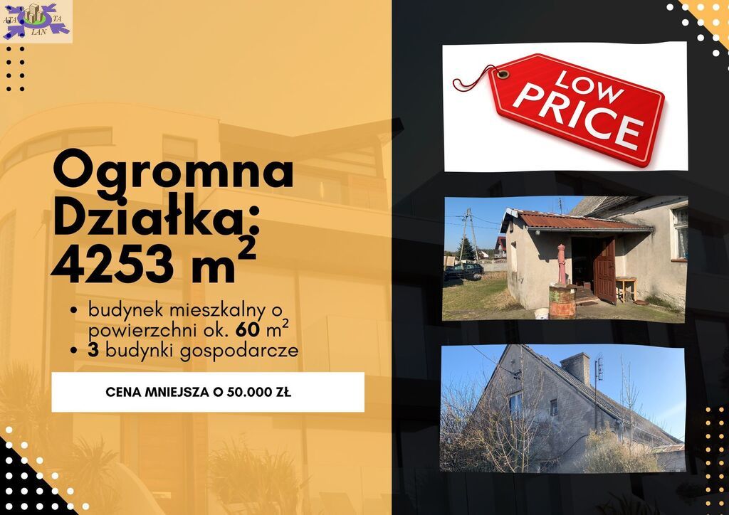 Zabudowa z Potencjałem Na działce znajduje się budynek mieszkalny o powierzchni ok. 60 m2 oraz trzy budynki gospodarcze. To solidna baza do stworzenia czegoś wyjątkowego.