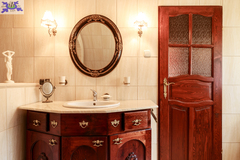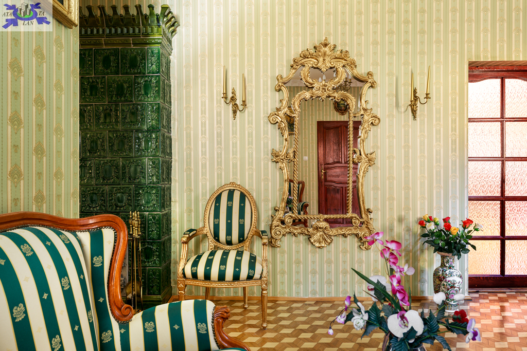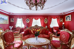 Wnętrza urzekają eleganckim stylem wiktoriańskim - mahoniowe meble, złocone lustra, stylowe tapety oraz drewniane parkiety w geometryczne wzory tworzą unikalny klimat.