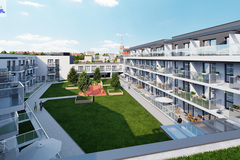 - przestronne, wysokie (do 276 cm) mieszkania z panoramicznymi przeszkleniami oraz balkonami, tarasami lub ogródkami,