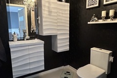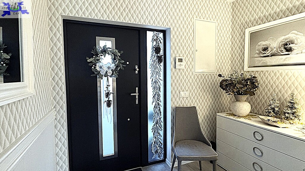 W każdej sypialni zainstalowano klimatyzację z funkcją sterowania przez Wi-Fi. Na tarasie znajduje się automatyczna markiza. Okna wyposażono w rolety antywłamaniowe sterowane pilotem.