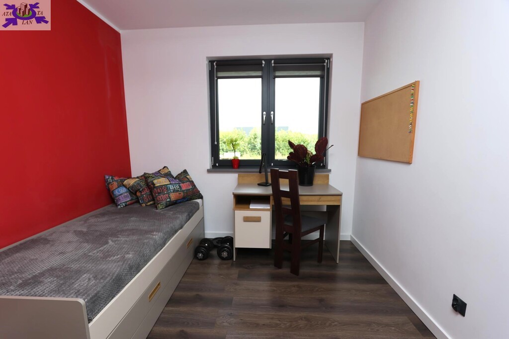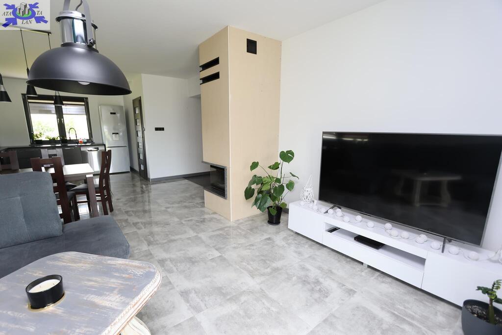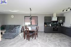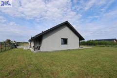 Dom parterowy o pow. użytkowej 109,80 m2 (salon z aneksem kuchennym i jadalnią + 3 pokoje, 2 łazienki, garderoba), położony na osiedlu domów jednorodzinnych, w niedalekiej odległości od lasu. Dojazd drogą prywatną utwardzoną. To doskonała nieruchomość dla rodziny 2+2.