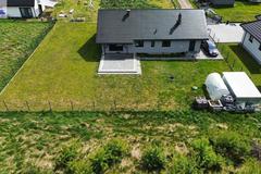 Dom posiada wykończony taras oraz podjazd z kostki polbrukowej. Działka w całości ogrodzona.