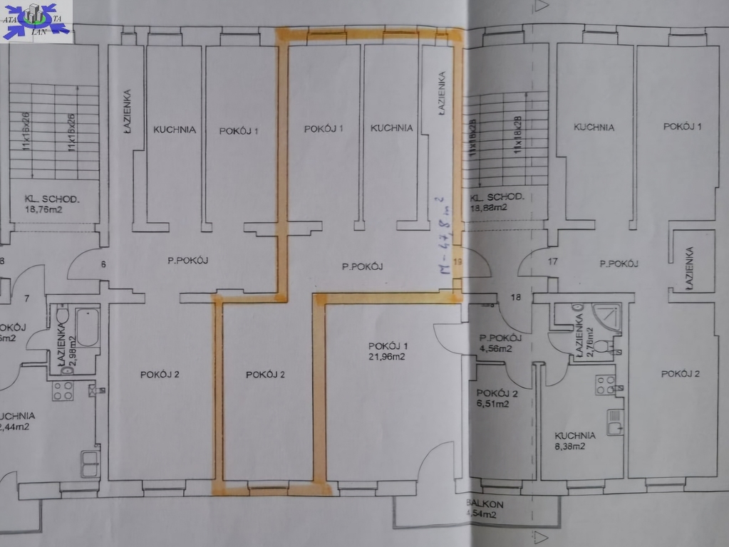 * powierzchnia 47,8mkw, II piętro, wystawa na dwie strony