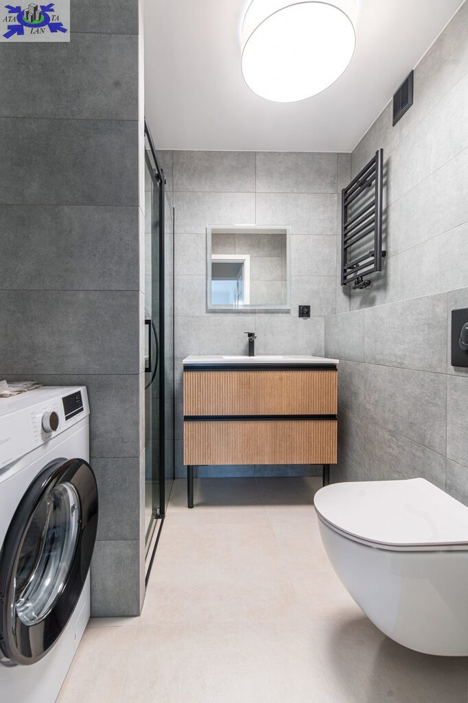 nowa kuchnia wyposażona w sprzęt AGD oraz stylowa łazienka po remoncie