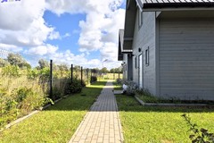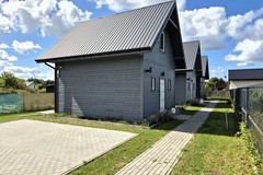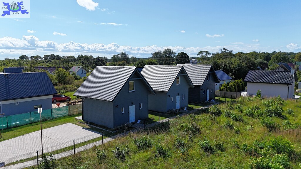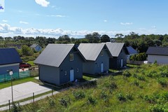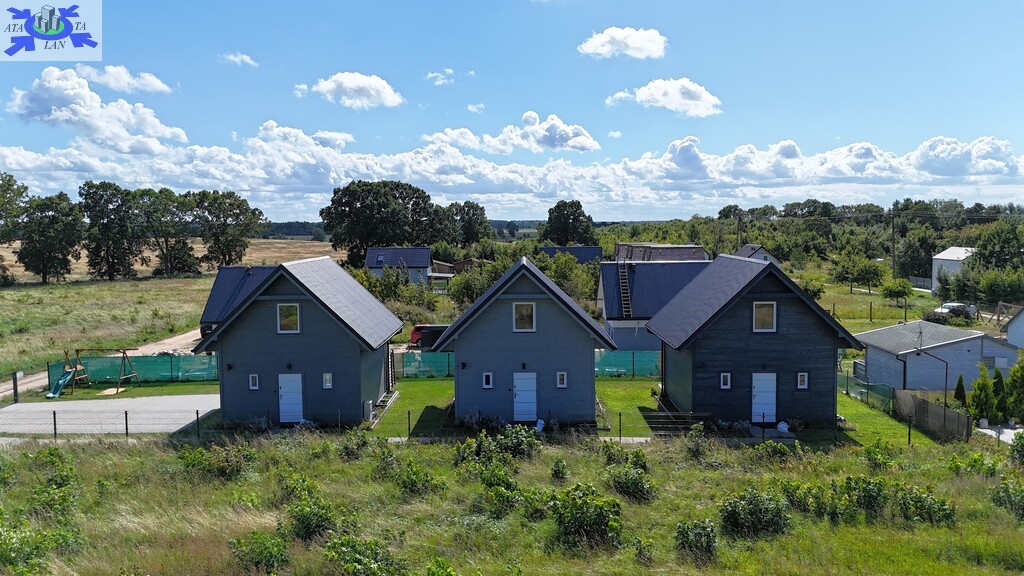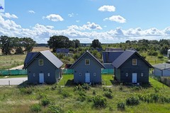 Domki wybudowane w 2023 roku są posadowione na żelbetowych płytach fundamentowych wyposażonych w rygle wzmacniające. Ściany zewnętrzne i wewnętrzne drewniane, między nimi zastosowano wypełnienie z wełny mineralnej 20cm, co doskonale izoluje zarówno pod kątem temperatury (nie ma żadnej potrzeby ich ogrzewania) jak i hałasu. Dach z blachy dachówko podobnej, okna PCV, schody zabiegowe drewniane. Tarasy i podjazd z polbruku, na którym mieszczą się 3 auta.