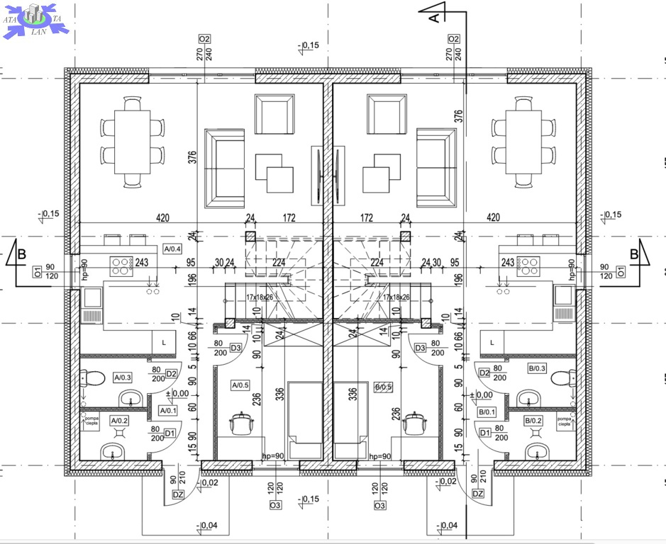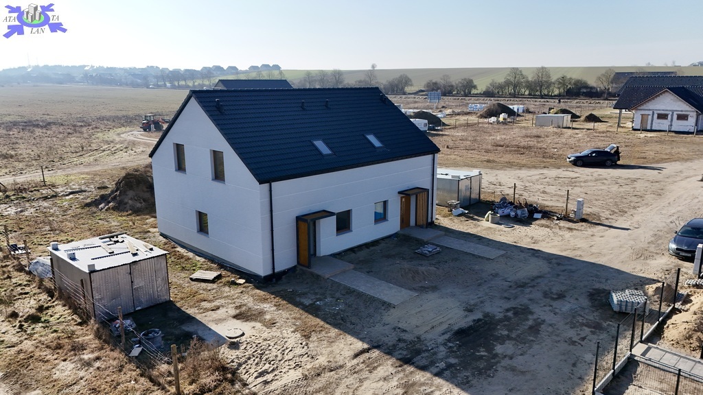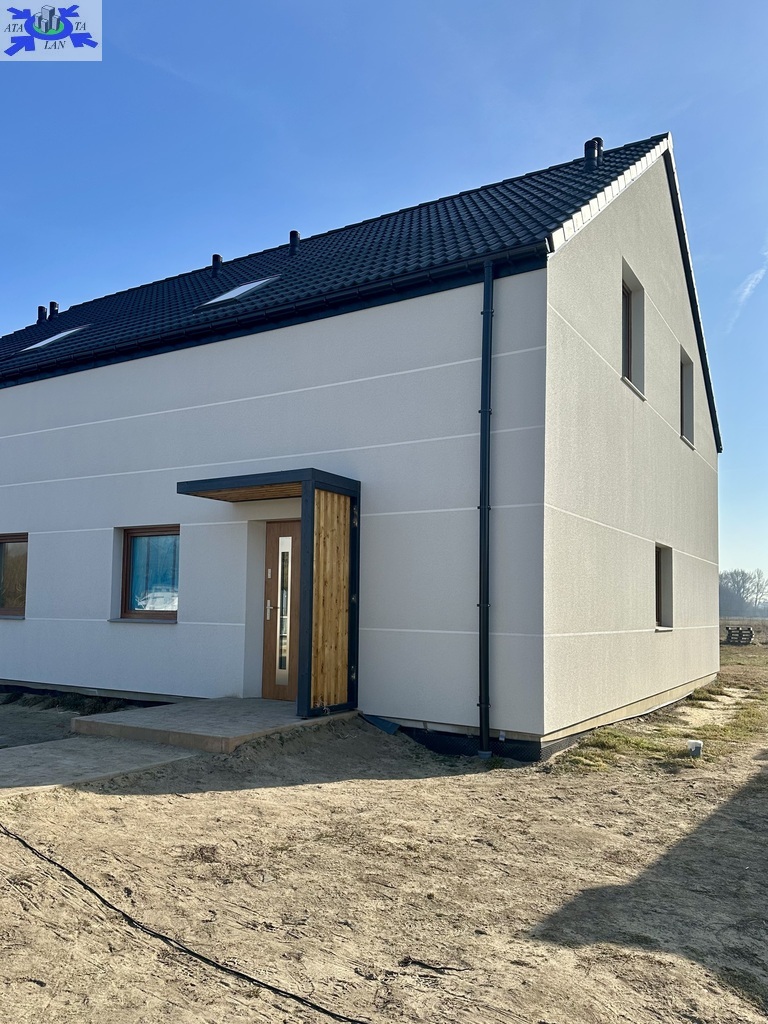 Ofertą sprzedaży jest połowa domu w zabudowie bliźniaczej o pow. całkowitej 106,74 m2 zaś użytkowej 100 m2 wraz z przynależną działką o pow. 505 m2.