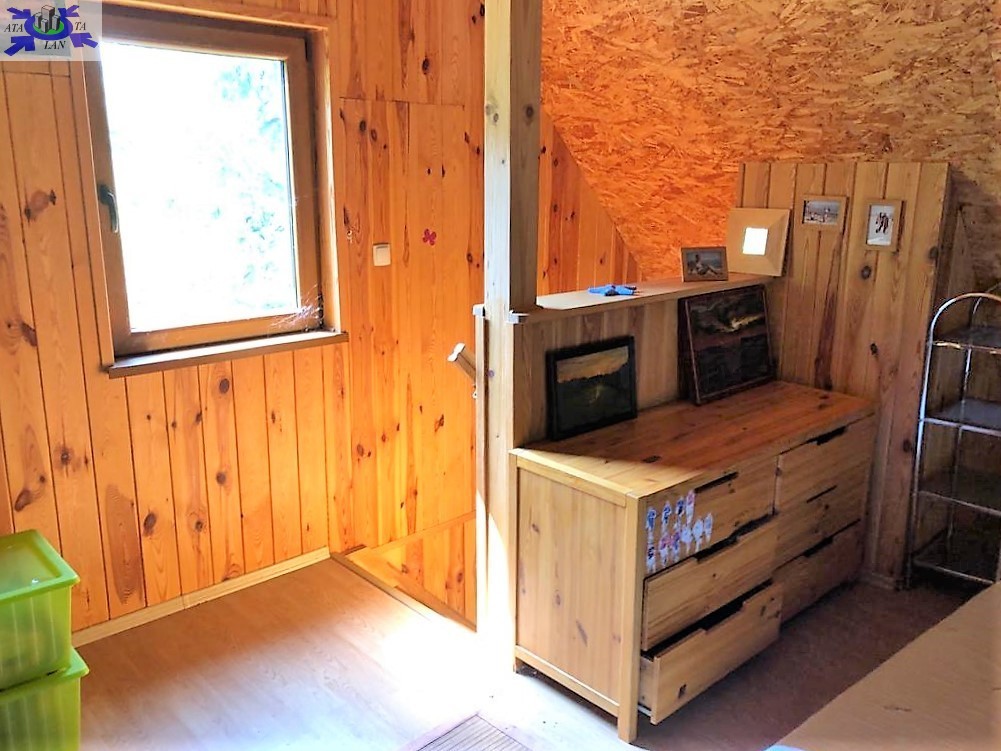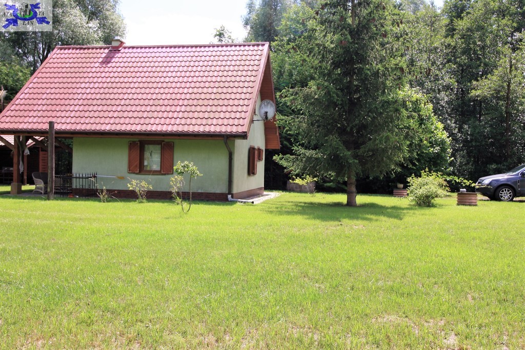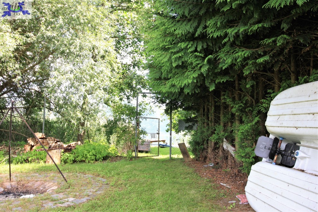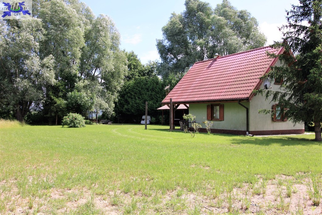 Na działce znajduje się całoroczny domek letniskowy o podstawie 35 m2, ogrzewany wydajną kozą norweską, co zapewnia komfort wypoczynku przez cały rok.