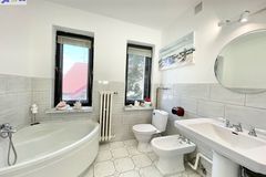 Piętro - trzy ustawne pokoje, z czego dwa posiadają dostęp do balkonu, oraz duża łazienka.