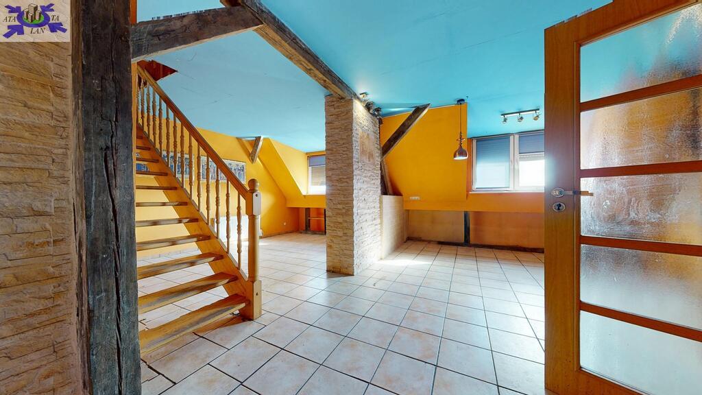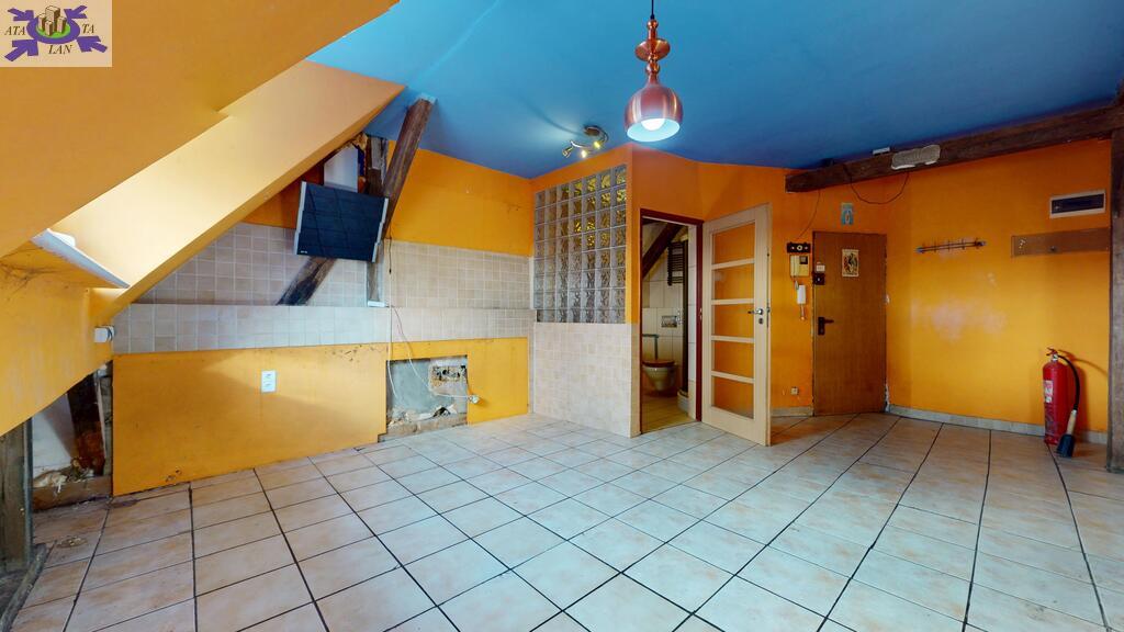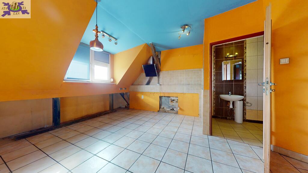 pierwszy poziom, z przestronnym salonem, kwadratową, ustawną kuchnią (do wykończenia), łazienką z wc i przedpokojemdrugi poziom stanowi otwarta przestrzeń, na której można wygospodarować 2 pokoje