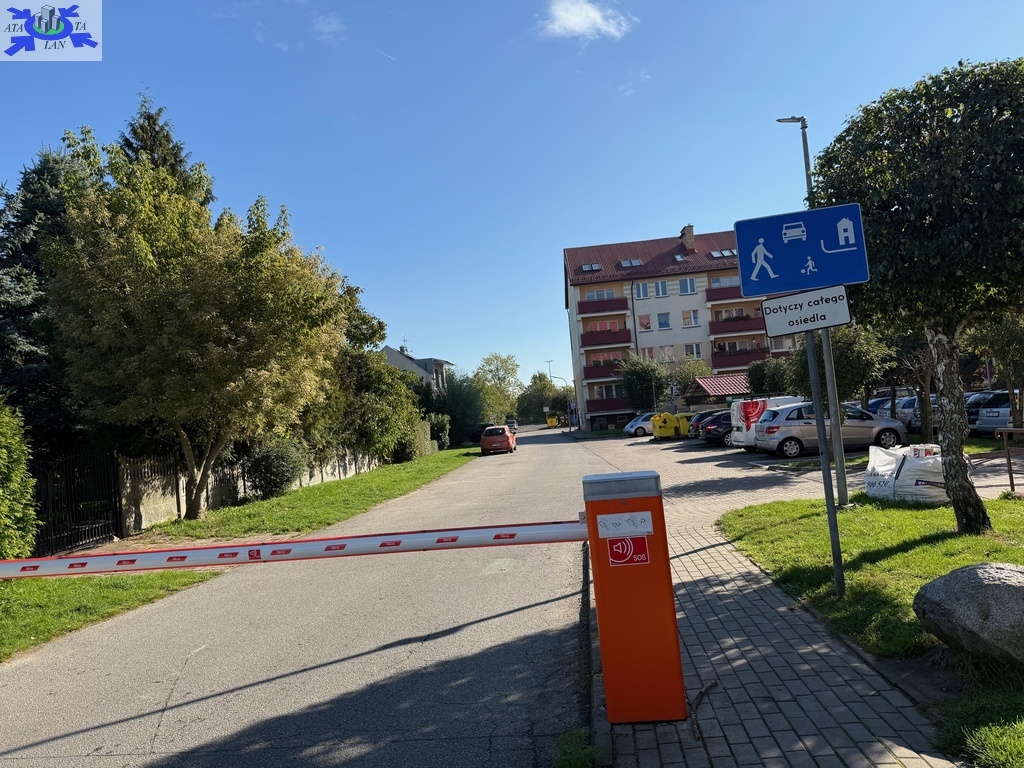 Osiedle zielone, zamknięte szlabanem na pilota.