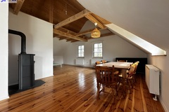 Dom przeszedł generalny remont. Zachowane zostały belki konstrukcyjne oraz drewno, które w połączeniu z nowoczesnym stylem nadają nieruchomości niesamowity klimat.