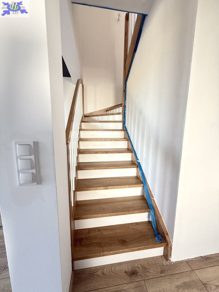 Nieruchomość oddawana w stanie pod klucz. Ściany gładzone malowane, łazienki z armaturą w glazurze i terakocie, podłogi winylowe, stolarka drzwiowa, brama garażowa na pilota, schody drewniane, biały montaż - wszytko w nowoczesnym stylu materiałami wysokiej jakości.