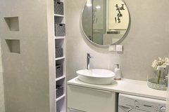 Ogrzewanie podłogowe jest rozprowadzone po całym mieszkaniu.