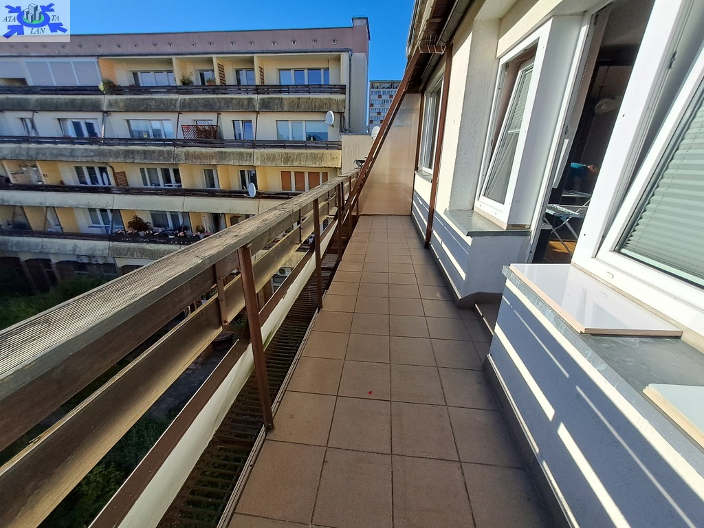 - salonu ok. 19 m2 z balkonem na całej długości pokoju z widokiem na zielone podwórko od strony zachodniej,