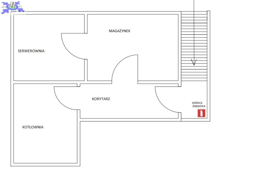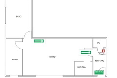 Budynek podzielony jest na część biurową ok 100 m2 oraz magazynową (rzuty w galerii).