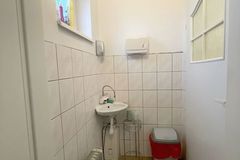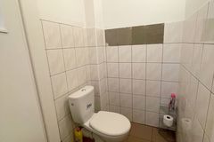 Ściany gładzone i malowane na biało, na podłodze położony gres. łazienka z wc na parterze wspólna z innym lokalem.