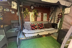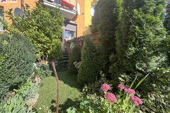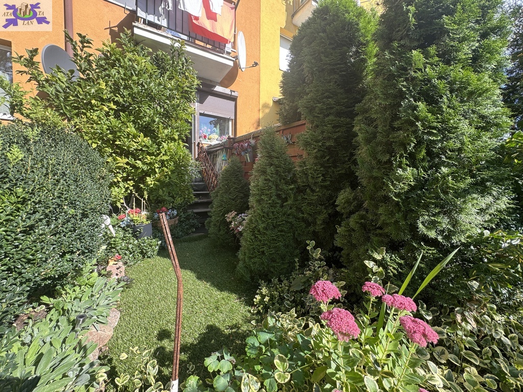 Ładnie zagospodarowany ogródek z bezpośrednim wyjściem z balkonu. W ogrodzie mała altanka z miejscem do odpoczynku.