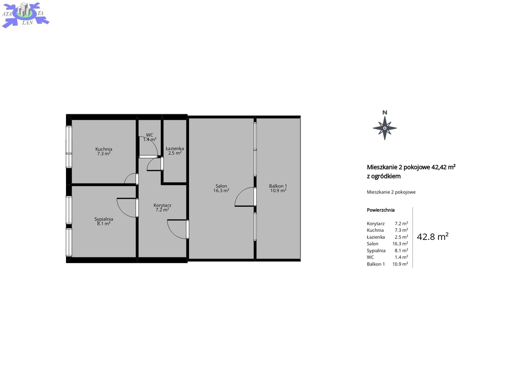 Na powierzchnię 42,42m2 składają się