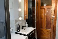 - Łazienka z oknem, kabiną prysznicową, wc i umywalką. Pomieszczenie wykafelkowane