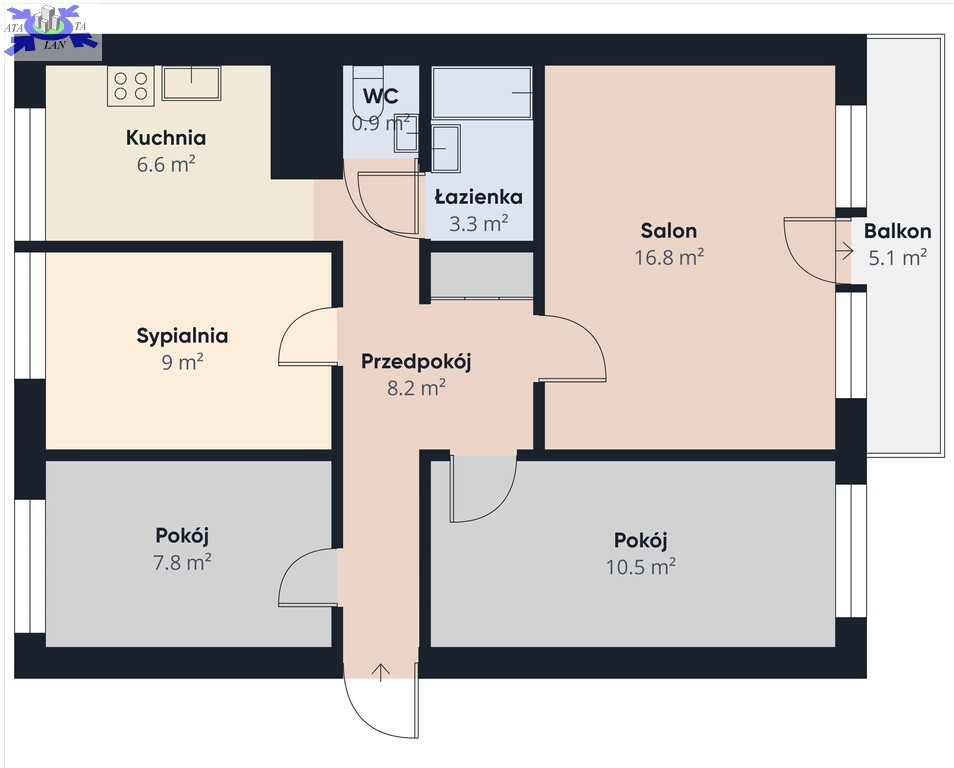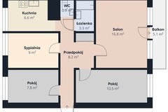 Mieszkanie o pow. 63,8 m2 składa się z
