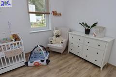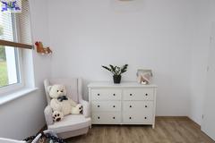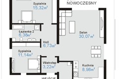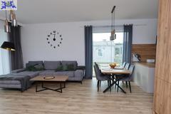 Funkcjonalny układ domu, nadający się dla 2 lub 3 osobowej rodziny, z przyjemnym wnętrzem, wykończony materiałami bardzo dobrej jakości.