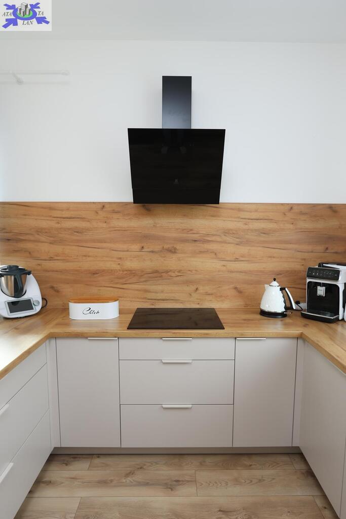 W cenie zakupu meble w stałej zabudowie pod wymiar (meble kuchenne, szafy), nowy sprzęt kuchenny w zabudowie.