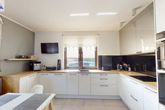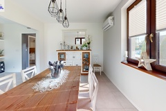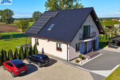 Standard i materiały Dom został wzniesiony w technologii tradycyjnej z dbałością o detale. Solidne, monolityczne stropy żelbetowe oraz dach o konstrukcji drewnianej, pokryty wysokiej jakości dachówką ceramiczną. Budynek jest doskonale zaizolowany termicznie (styropian na ścianach zewnętrznych, polistyren ekstrudowany na fundamentach oraz wełna mineralna na poddaszu), co przekłada się na niskie koszty utrzymania. Na dachu zainstalowano panele fotowoltaiczne, co stanowi dodatkowy atut ekologiczny i ekonomiczny.