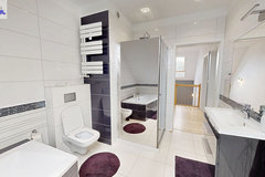 Duża, elegancka łazienka.