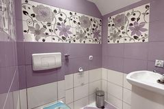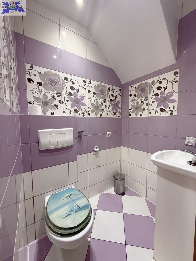 Łazienka na piętrze i toaleta na parterze w glazurze i terakocie.