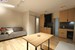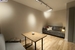 Kuchnia z niezbędnym sprzętem AGD, m.in. pralko-suszarka, zmywarka i piekarnik, lodówka, płyta indukcyjna.