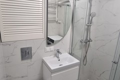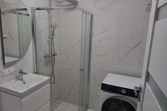 - w łazience kabina prysznicowa z pralko suszarką.