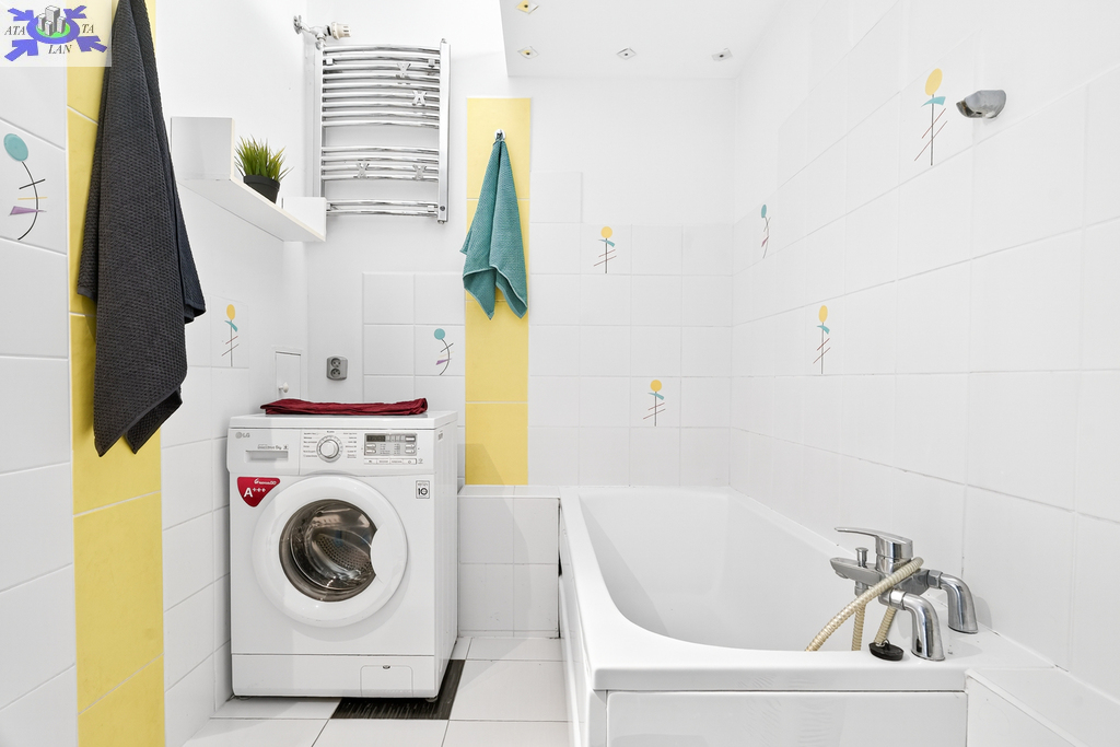 Łazienka z wanną (ok. 5 m2) - wykończona glazurą i terakotą, z wanną i pralką