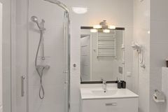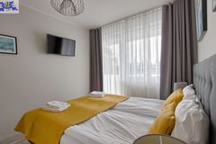 Apartament umeblowany, ładnie i wygodnie urządzony. Powierzchnia to prawie 38 m2. Składa się z salonu z rozkładaną kanapą, w pełni wyposażonego aneksu kuchennego oraz sypialni z łożem małżeńskim i łazienki z prysznicem. Dodatkowym atutem jest taras na który można wyjść z sypialni, jak i z salonu. W budynku znajduje się siłownia, rowerownia, a na dachu taras z leżakami. Teren obiektu jest ogrodzony. Budynek wybudowany przez solidnego kołobrzeskiego dewelopera, dobrze zarządzany. Koszty utrzymania to około 600 zł. Ogrzewanie i ciepła woda z sieci miejskiej.