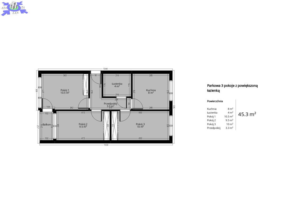 - uzyskanie rozkładowych 3 pokojów poprzez podzielenie salonu na 2 mniejsze