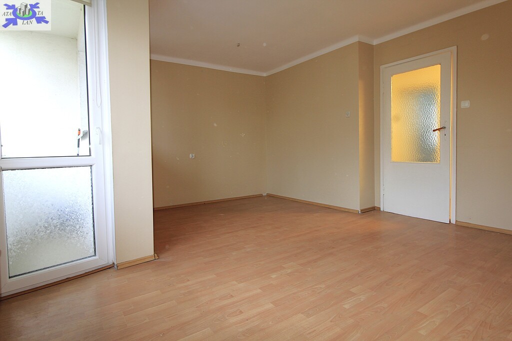 Układ pomieszczeń duży, jasny pokój dzienny z wyjściem na balkon,