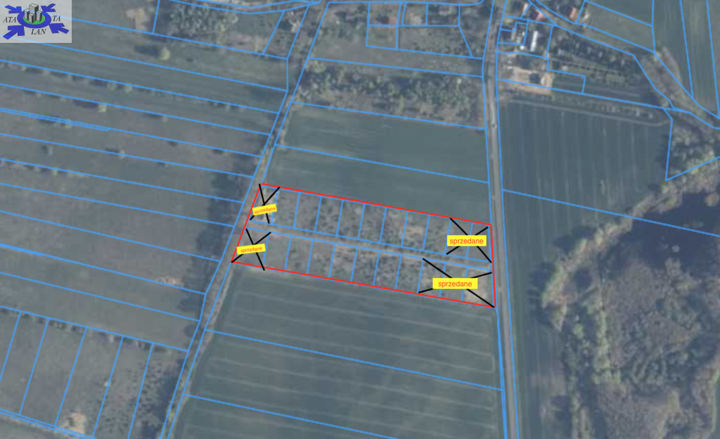 Działki mają regularny, prostokątny kształt, co ułatwia zagospodarowanie terenu i budowę domu.
