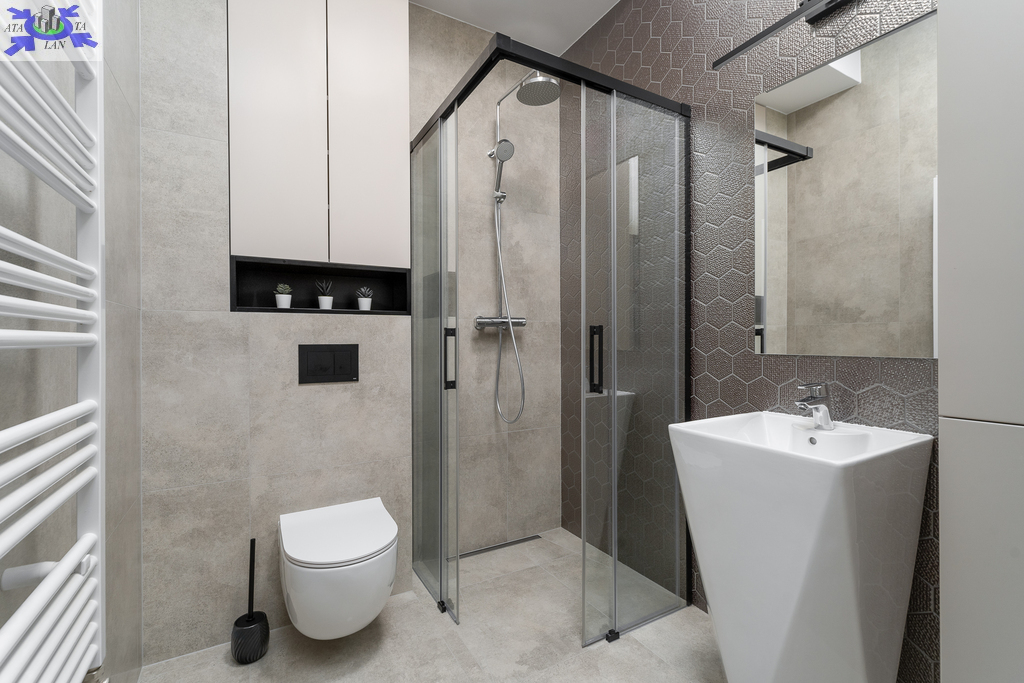 - łazienka z prysznicem, wc, pralką